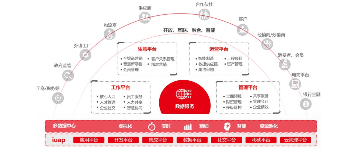 开放互联,融合,云端智能服务,打造数字企业创新平台,重塑企业新技术、新商业的核心竞争力。
