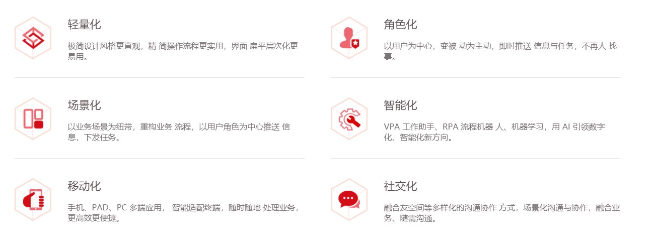 连接全球资源,事件驱动敏捷业务,打造协同供应链;赋能员工,智慧协同,组织,支持创新型的敏捷组织。