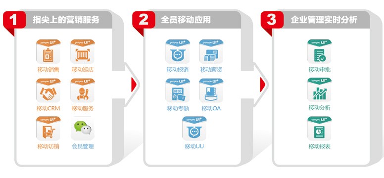 用友U8+移动应用帮助企业通过移动设备快速处理企业经营管理的各种业务,提供从一线业务处理,消息通知、数据上报、审批业务单据、业务追踪、报表查询直至管理决策的多种移动功能,通过移动应用这把企业管理、企业运营的必备利器,使企业无论员工还是管理者在移动终端上都能实现在PC上的各种功能,同时促进原有业务流程变革,实现移动场景下的业务协同。